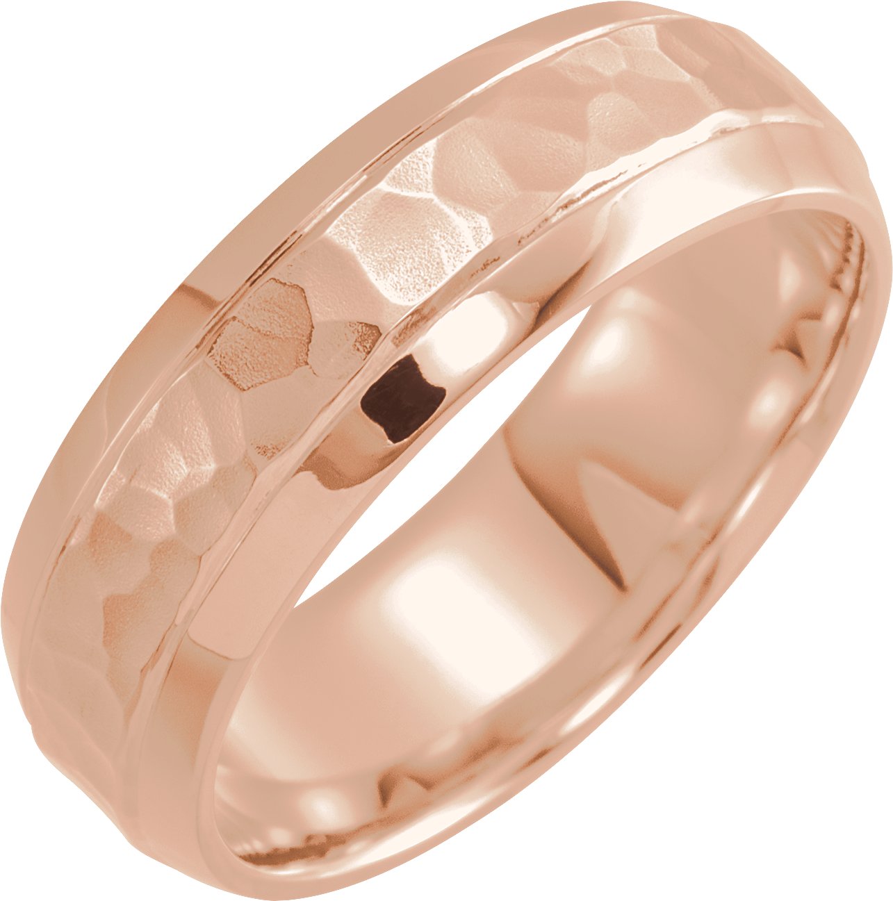 10K Rose 7 mm Beveled-Edge Band with Hammered Finish Size 5