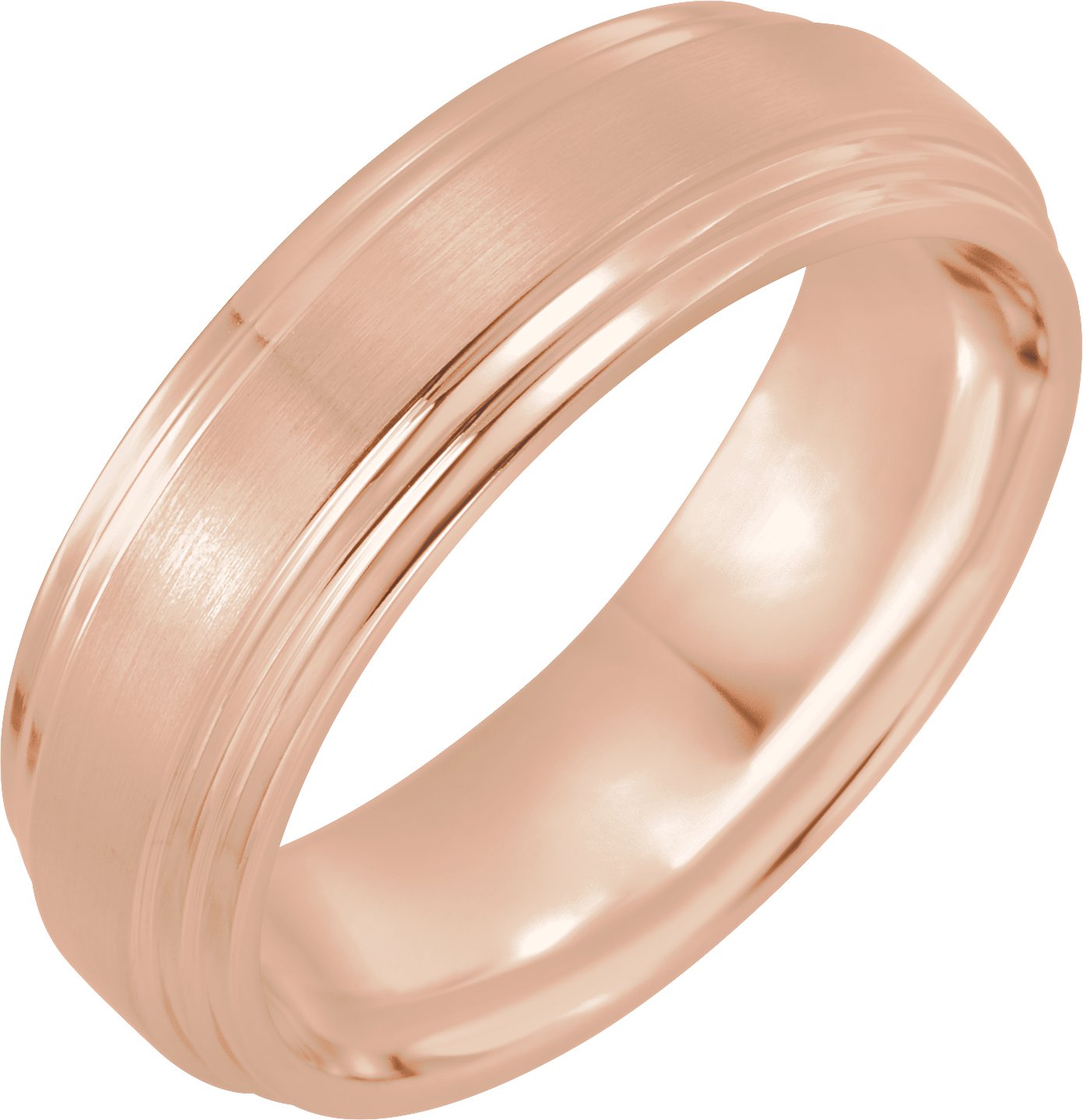 10K Rose 7 mm Double Beveled-Edge Band with Satin/Polished Finish Size 15.5
