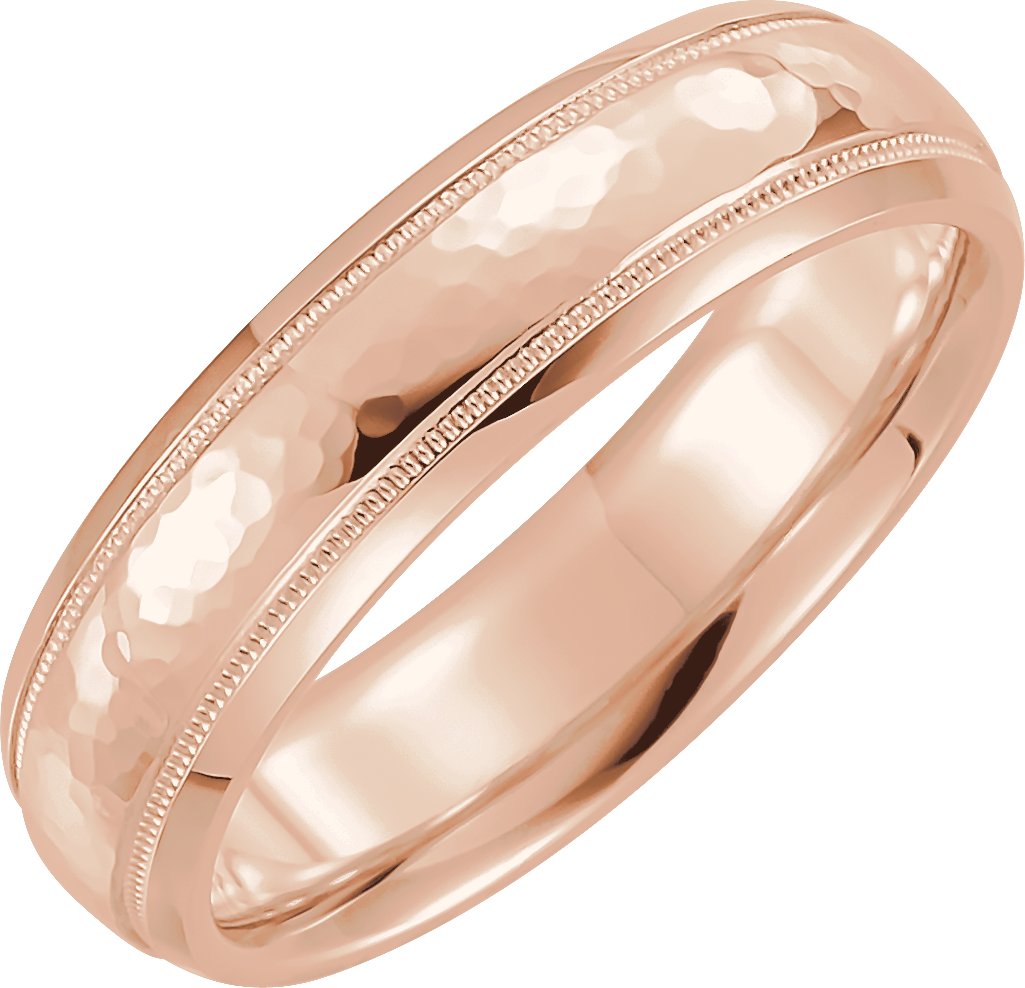10K Rose 7 mm Half Round Band with Hammer Finish & Milgrain Size 8