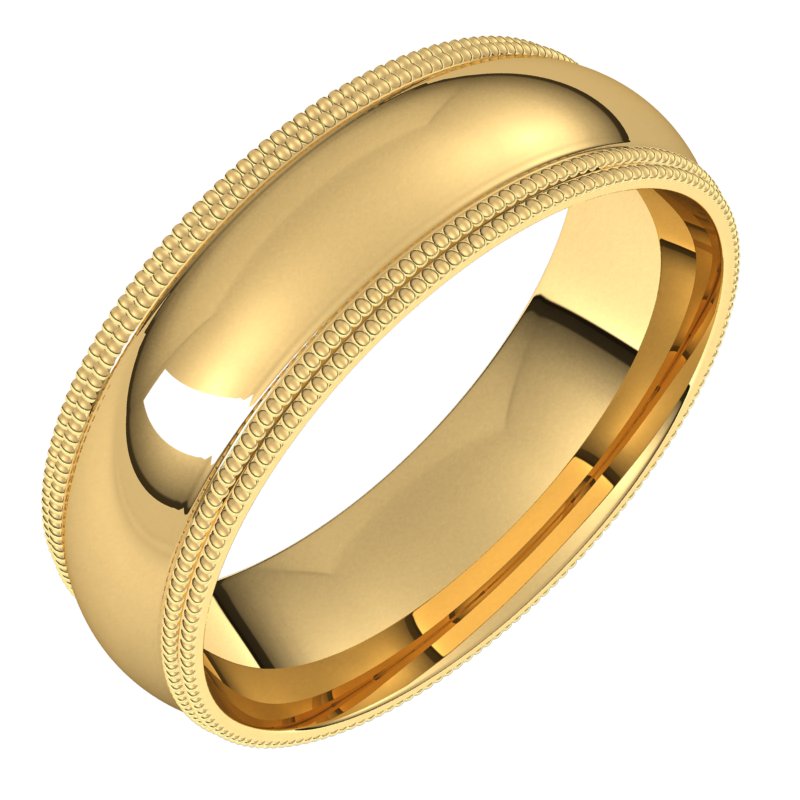 Description: Double Milgrain Half Round Comfort Fit Band
