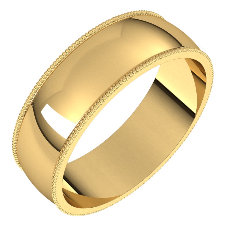 10K Yellow 6 mm Milgrain Half Round Light Band Size 14 Ref 131686