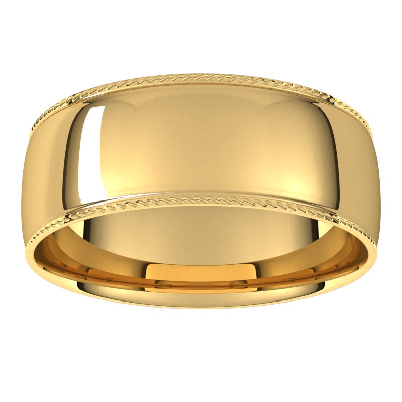 10K Yellow 7 mm Rope Half Round Comfort Fit Band Size 17