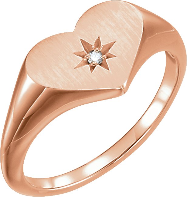 Description: .01 CTW Diamond Heart Signet Ring