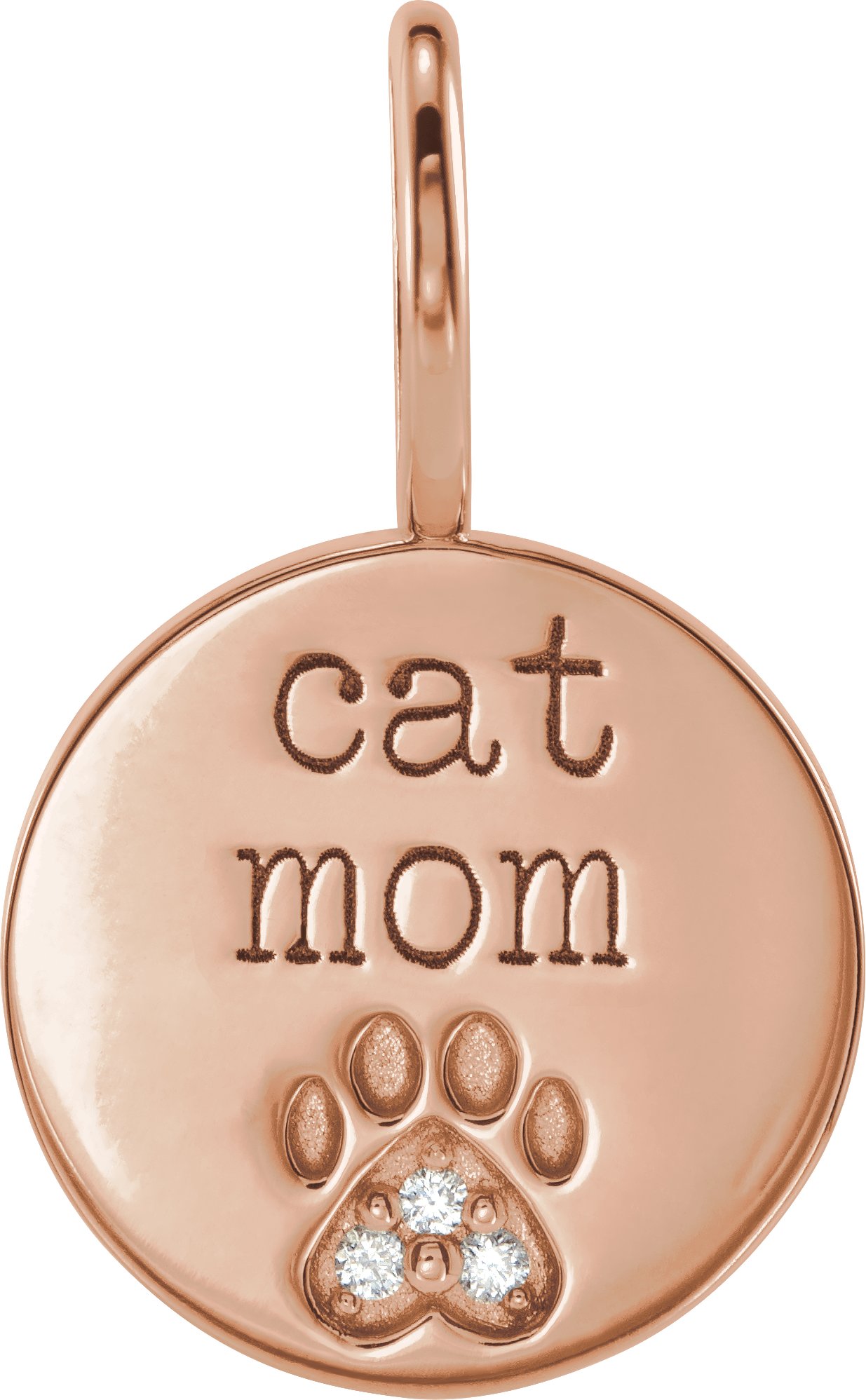14K Rose .01 CTW Natural Diamond Engraved Cat Mom Paw Print Charm or Pendant Ref 19262767