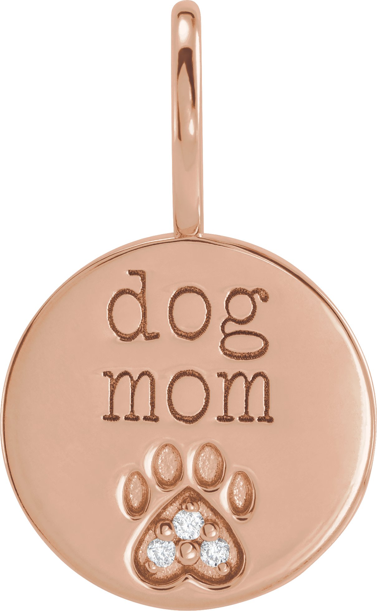 14K Rose .01 CTW Natural Diamond Engraved Dog Mom Paw Print Charm or Pendant Ref 19258443