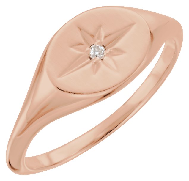 14K Rose .02 CT Diamond 10x8 mm Oval Starburst Signet Ring