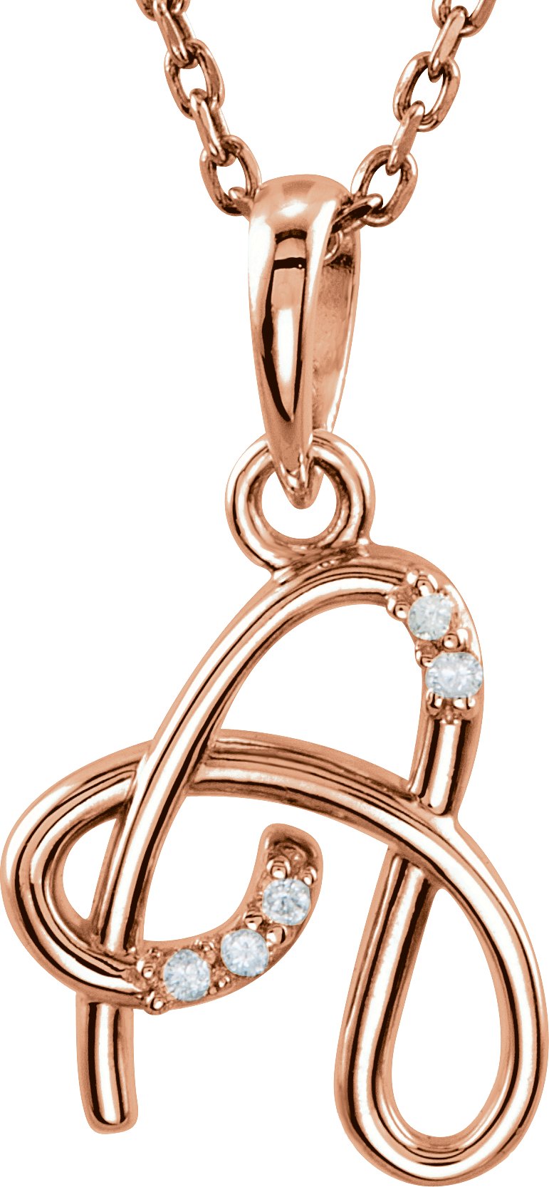 14K Rose .02 CTW Diamond Initial A 18" Necklace Ref. 6915991