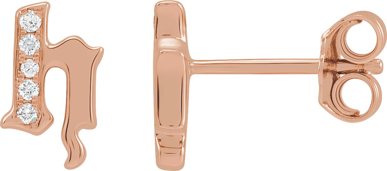 14K Rose .02 CTW Diamond Single Gothic Initial H Earring Ref 18433457