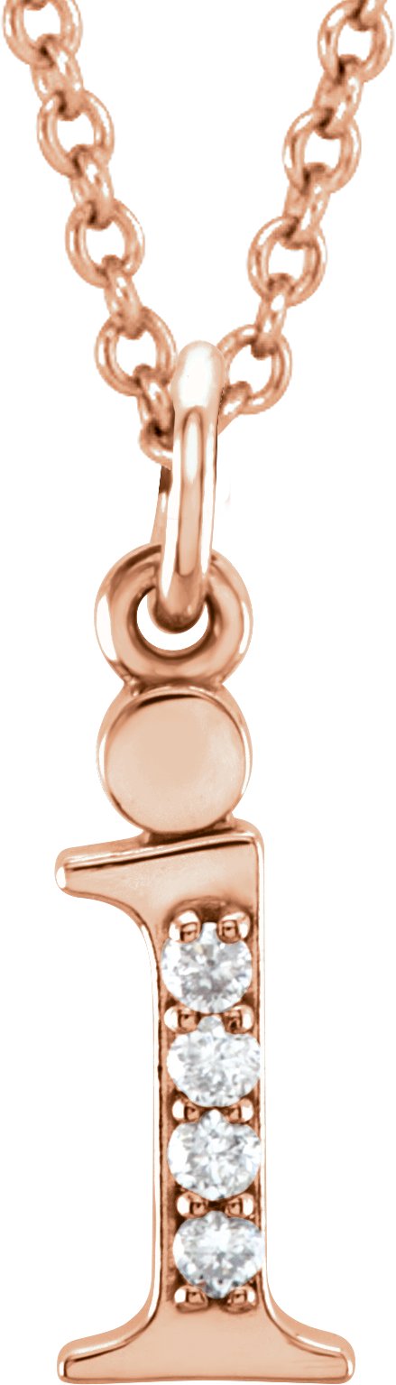 14K Rose .02 CTW Natural Diamond Lowercase Initial I 16" Necklace