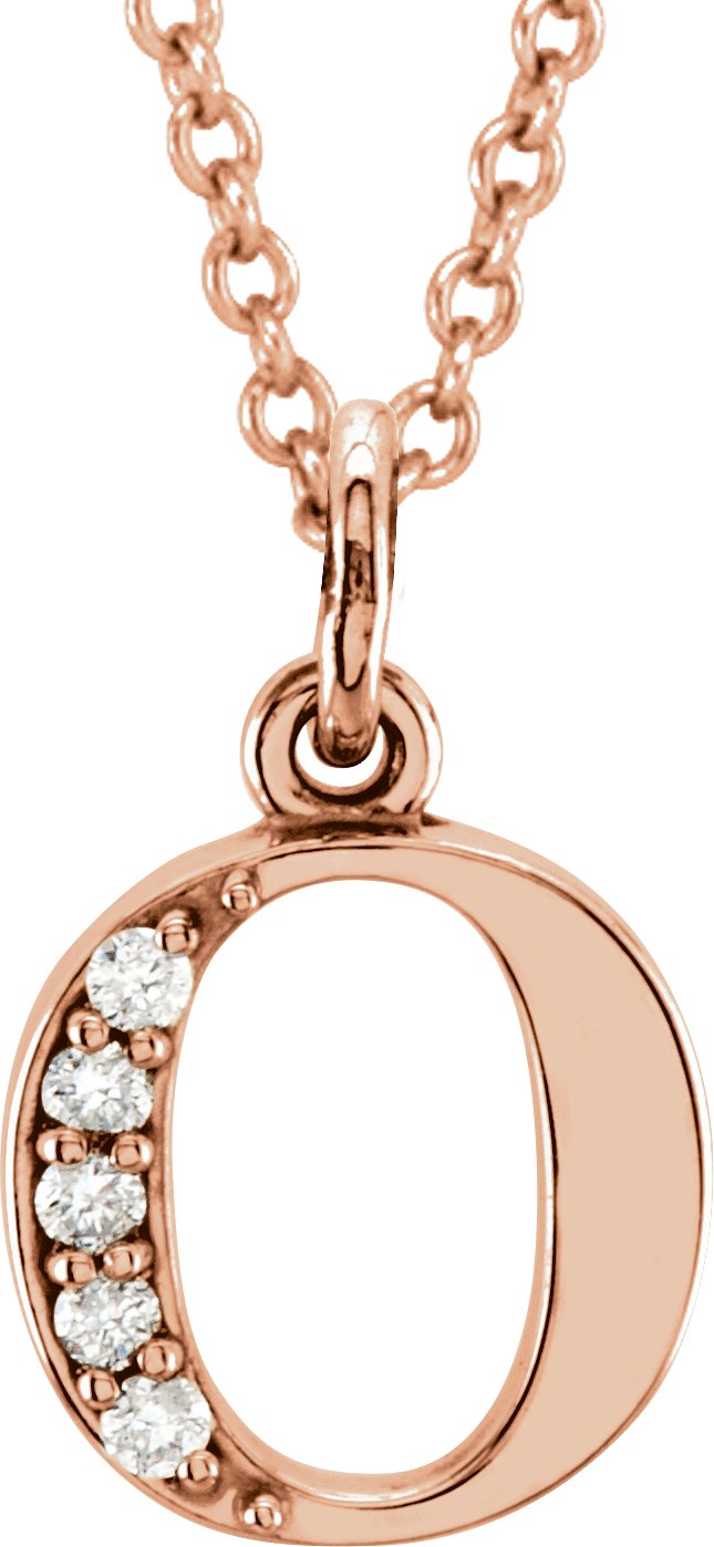 14K Rose .02 CTW Natural Diamond Lowercase Initial O 16" Necklace