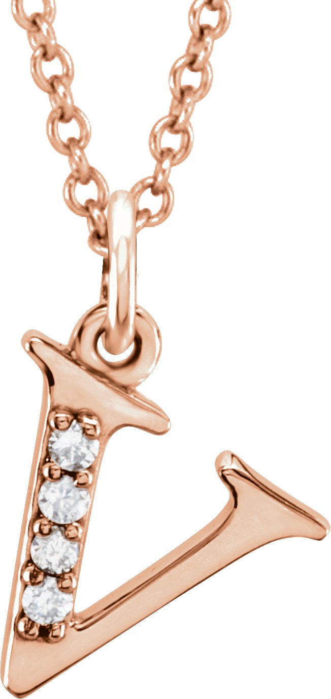 14K Rose .02 CTW Natural Diamond Lowercase Initial V 16" Necklace