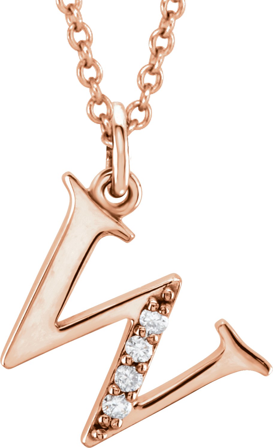 14K Rose .02 CTW Natural Diamond Lowercase Initial W 16" Necklace