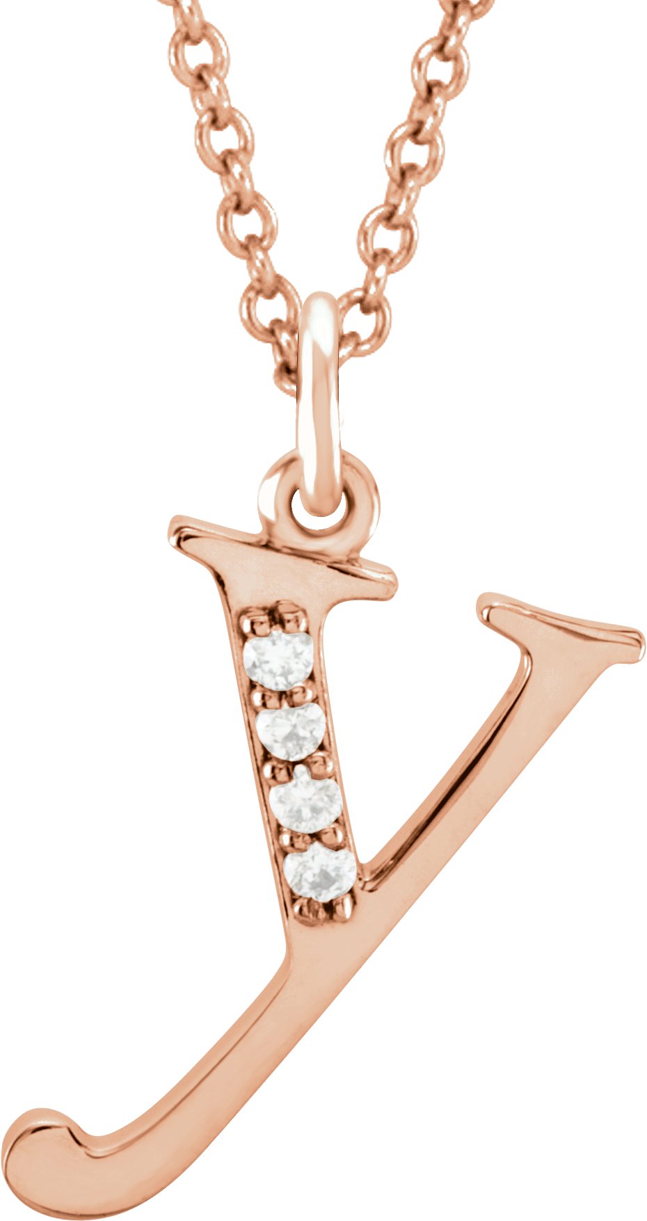 14K Rose .02 CTW Natural Diamond Lowercase Initial Y 16" Necklace
