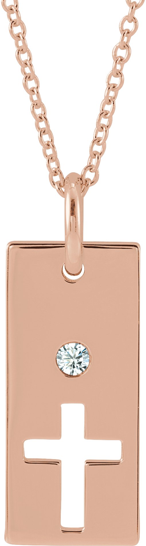 14K Rose .03 CT Diamond Cross Bar 16 18" Necklace Ref. 17077727
