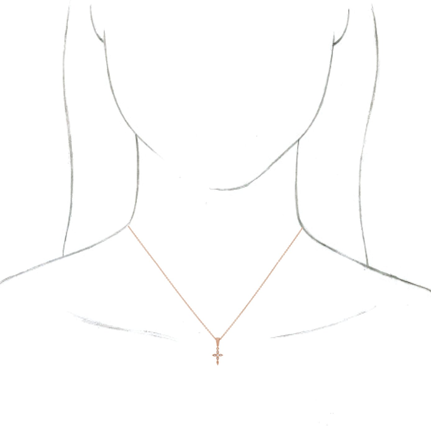 14K Rose .03 CTW Diamond Petite Vintage Inspired 16 18" Cross Necklace Ref. 16333389