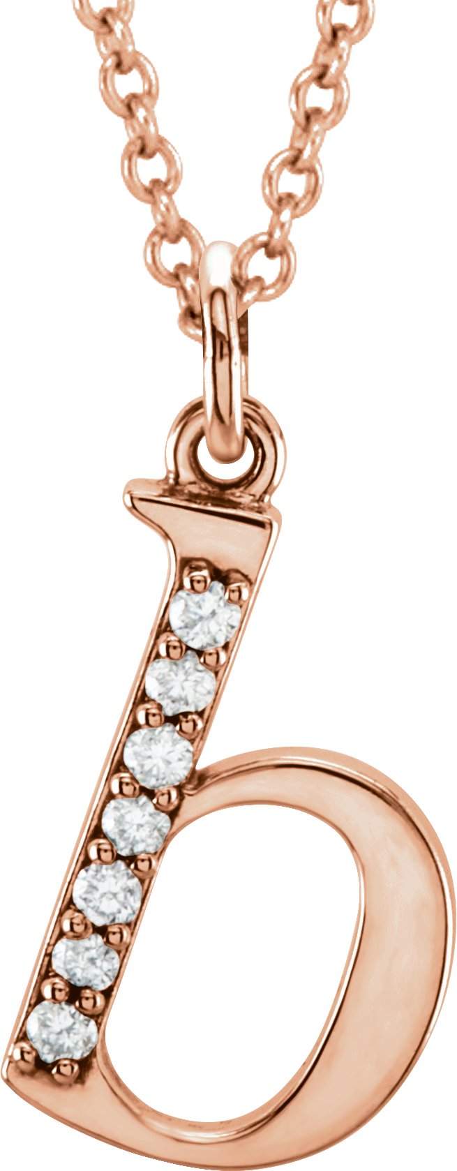 14K Rose .03 CTW Natural Diamond Lowercase Initial B 16" Necklace