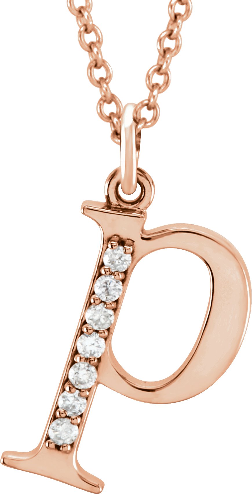 14K Rose .03 CTW Natural Diamond Lowercase Initial P 16" Necklace