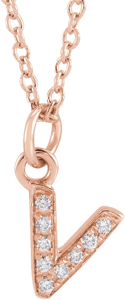 14K Rose .03 CTW Natural Diamond Petite Initial V 16 to 18 inch Necklace Ref 18053988