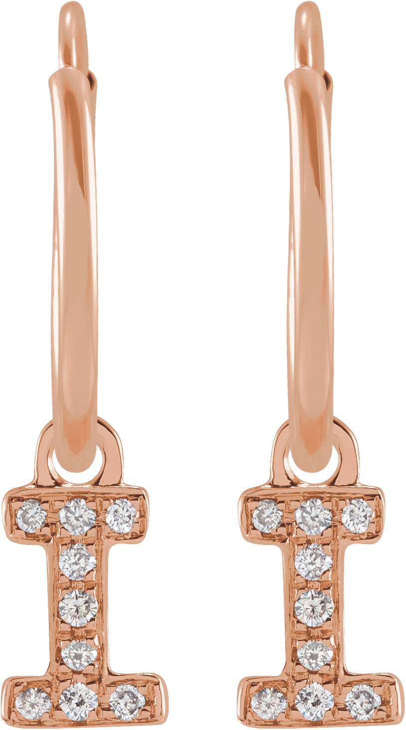 14K Rose .03 CTW Natural Diamond Single Initial I Hoop Earring Ref 18988700
