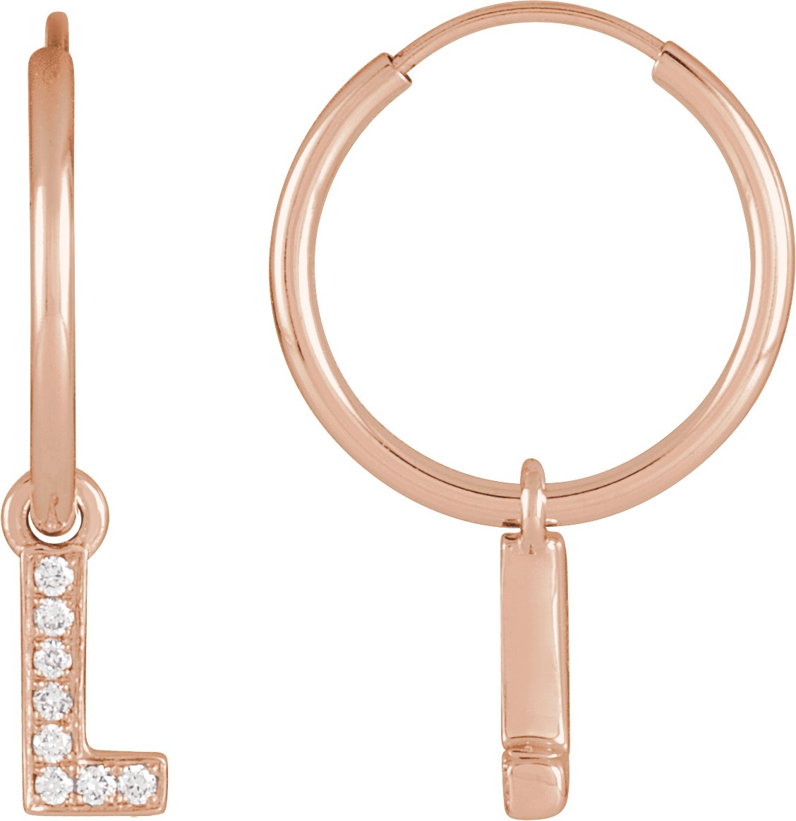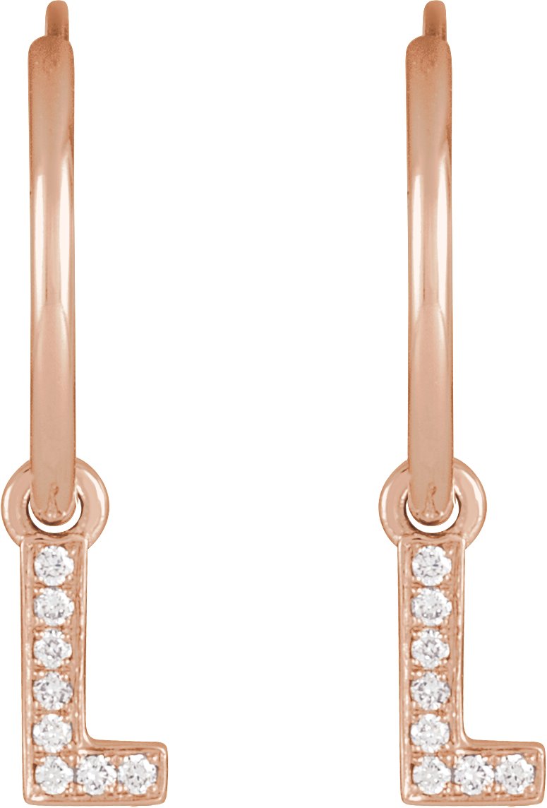 14K Rose .03 CTW Natural Diamond Single Initial L Hoop Earring Ref 18988757