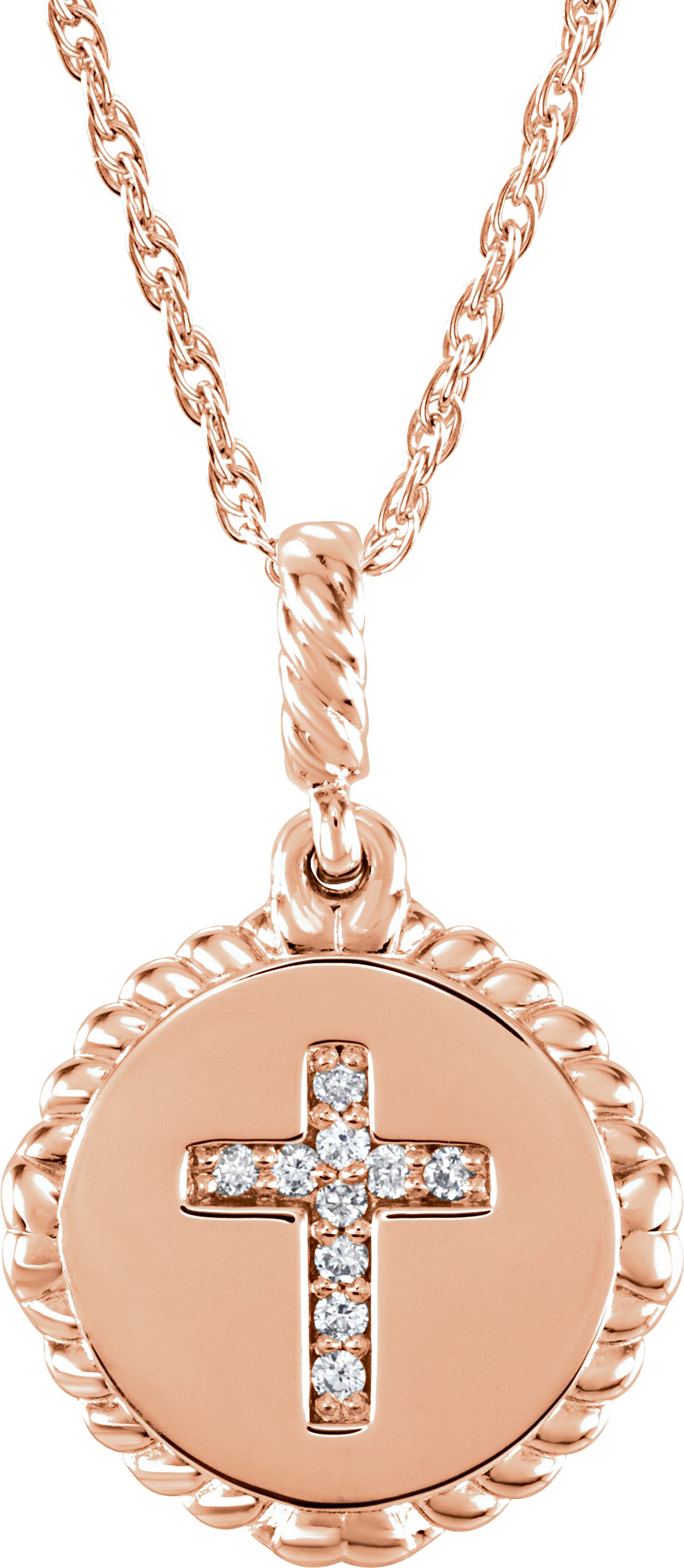 14K Rose .04 CTW Diamond Cross Rope 16 18" Necklace Ref. 14646515