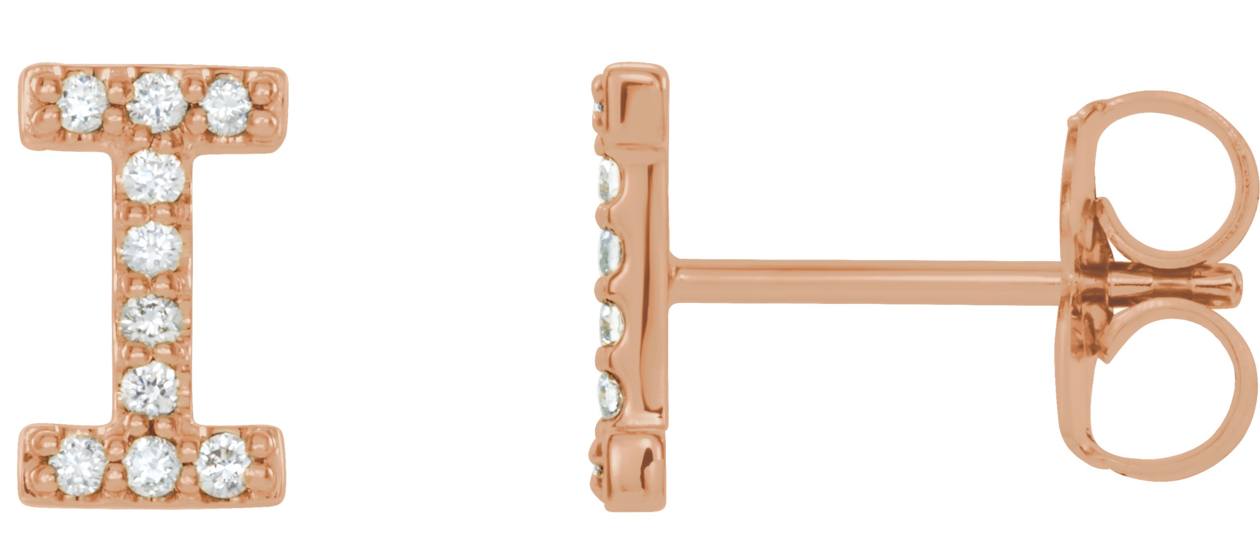 14K Rose .04 CTW Diamond Single Initial I Earring