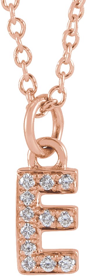 14K Rose .04 CTW Natural Diamond Petite Initial E 16 to 18 inch Necklace Ref 18053937