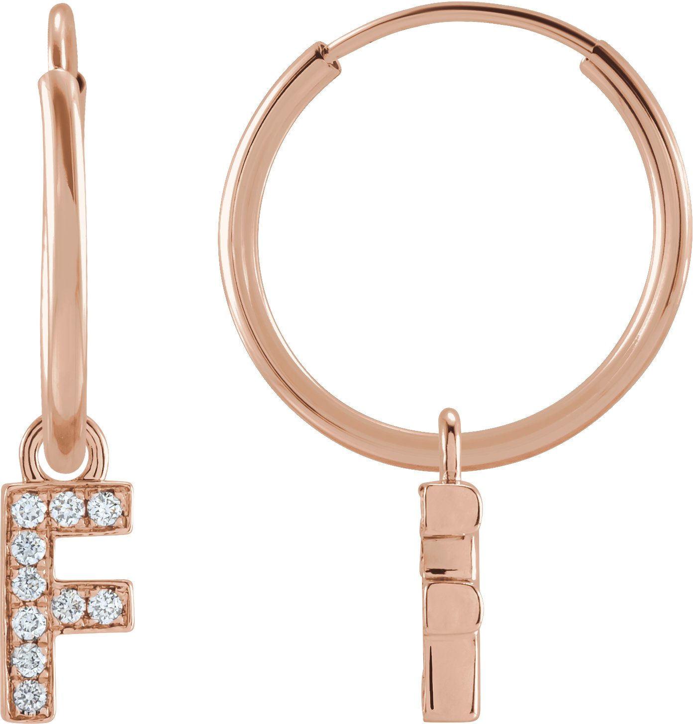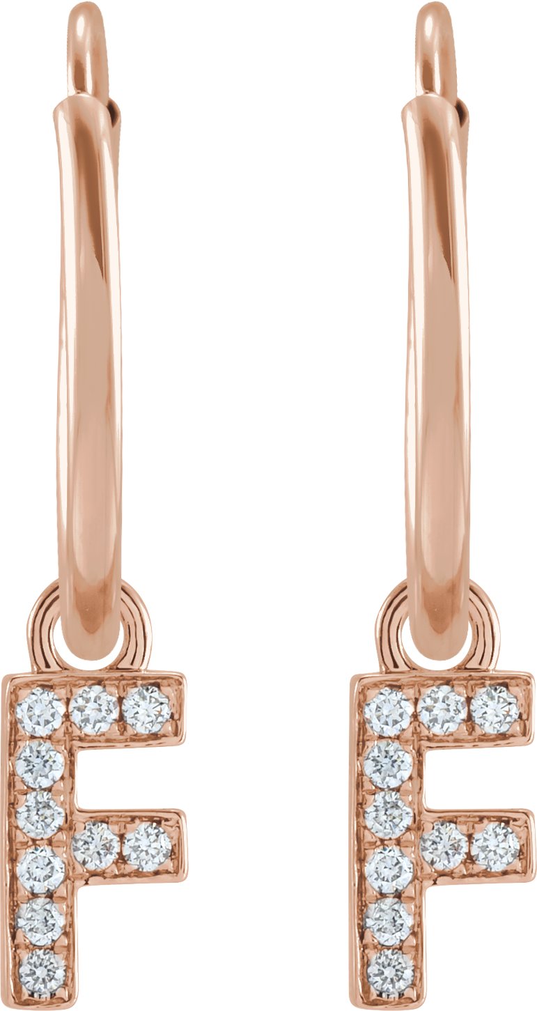 14K Rose .04 CTW Natural Diamond Single Initial F Hoop Earring Ref 18988717