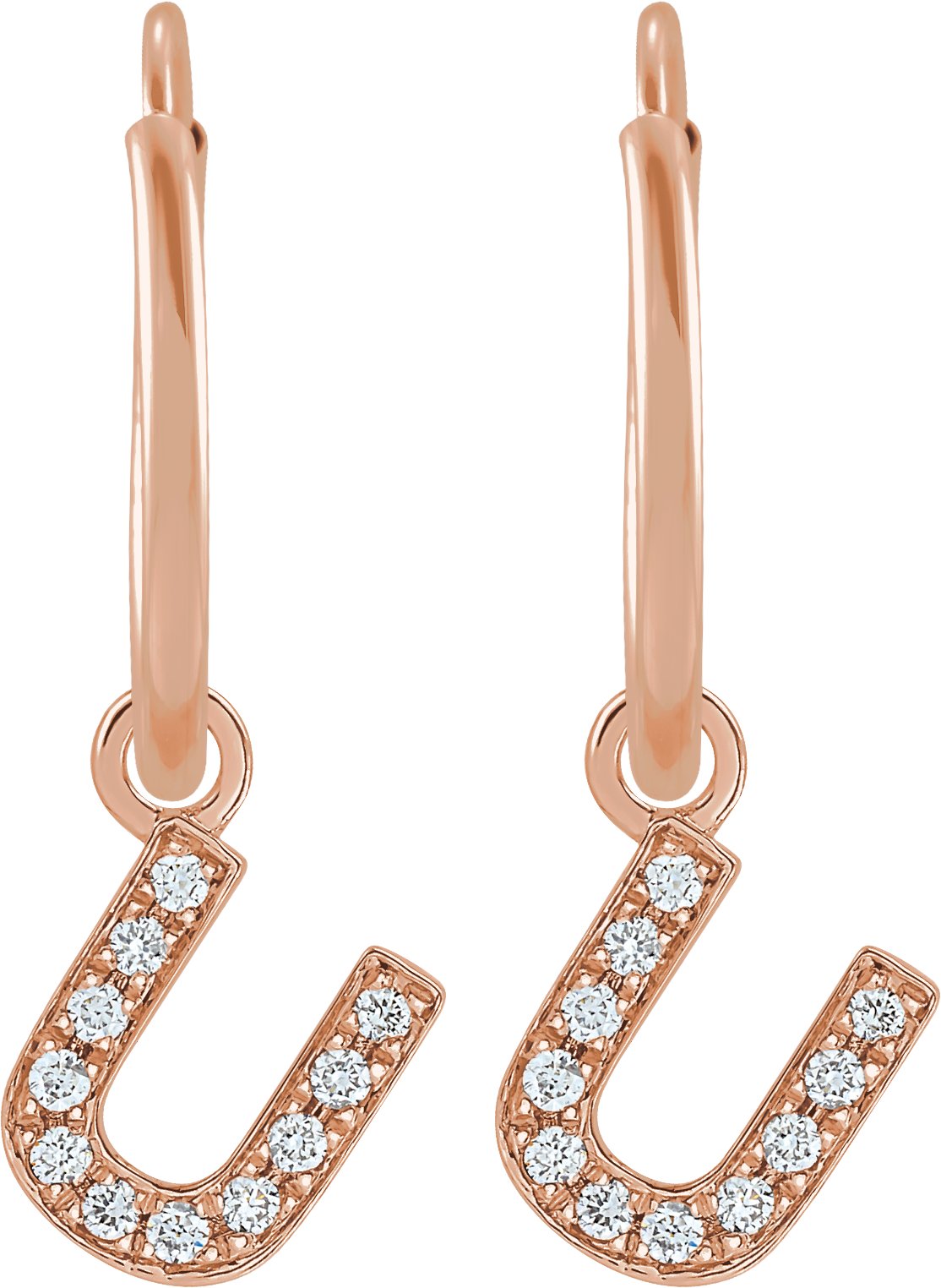 14K Rose .04 CTW Natural Diamond Single Initial U Hoop Earring Ref 18988688
