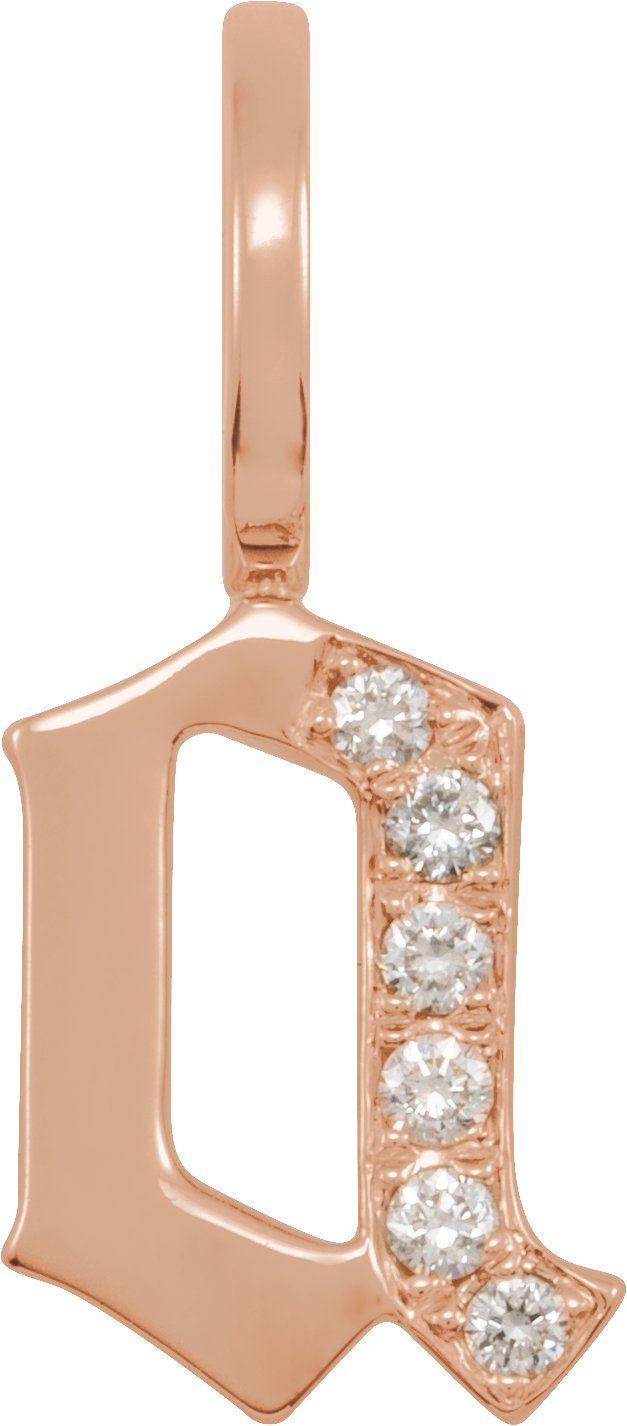 14K Rose .05 CTW Natural Diamond Gothic Initial A Charm or Pendant Ref 18481990