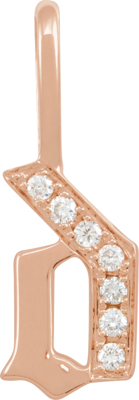 14K Rose .05 CTW Natural Diamond Gothic Initial D Charm or Pendant Ref 18481999