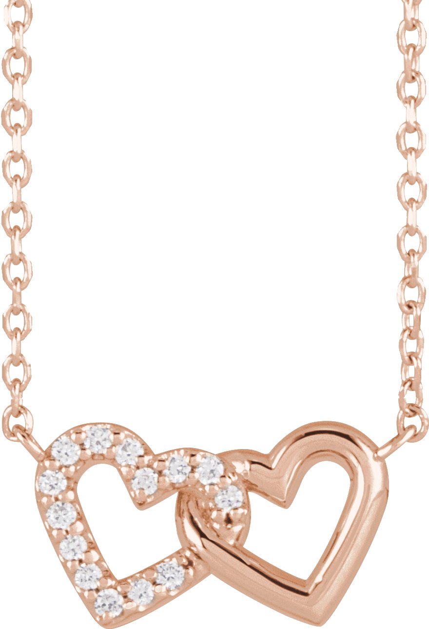 14K Rose .05 CTW Natural Diamond Petite Double Interlocking Heart 16 to 18 inch Necklace Ref 19306715