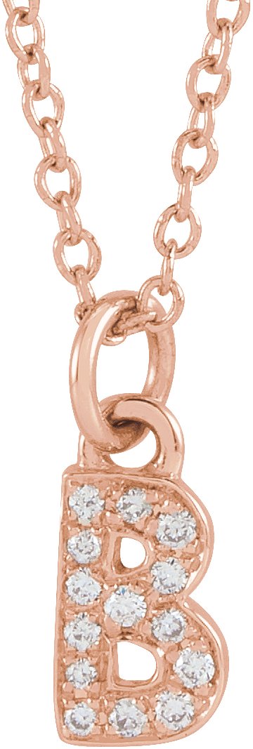 14K Rose .05 CTW Natural Diamond Petite Initial B 16 to 18 inch Necklace Ref 18053928