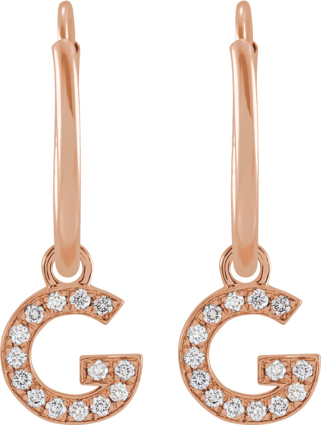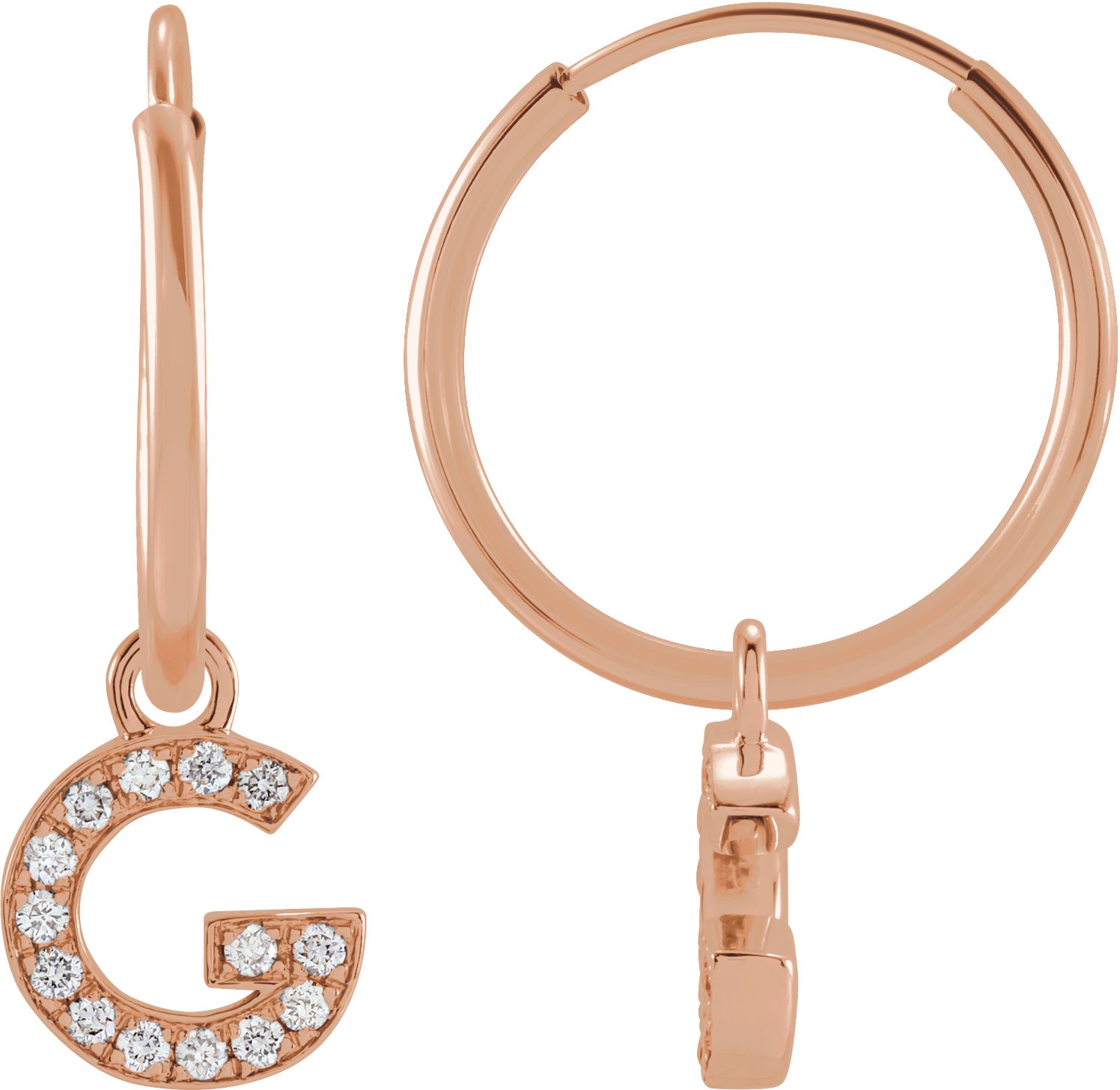 14K Rose .05 CTW Natural Diamond Single Initial G Hoop Earring Ref 18988706