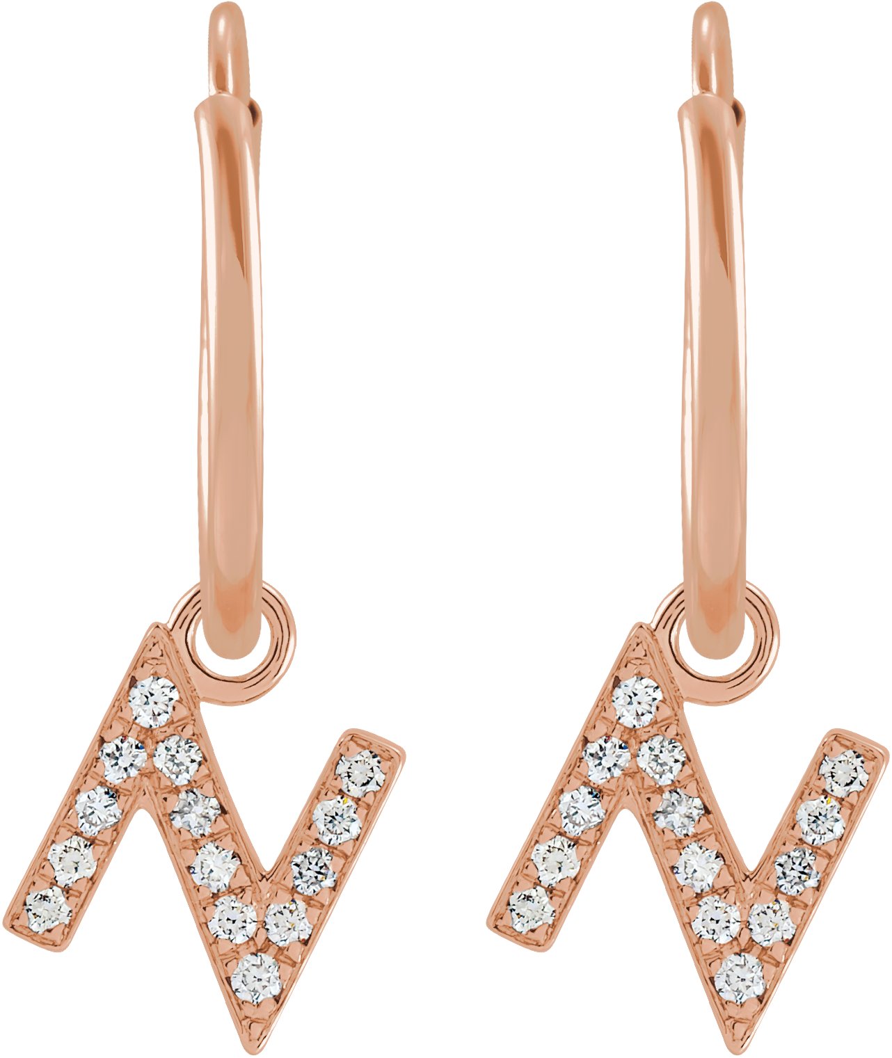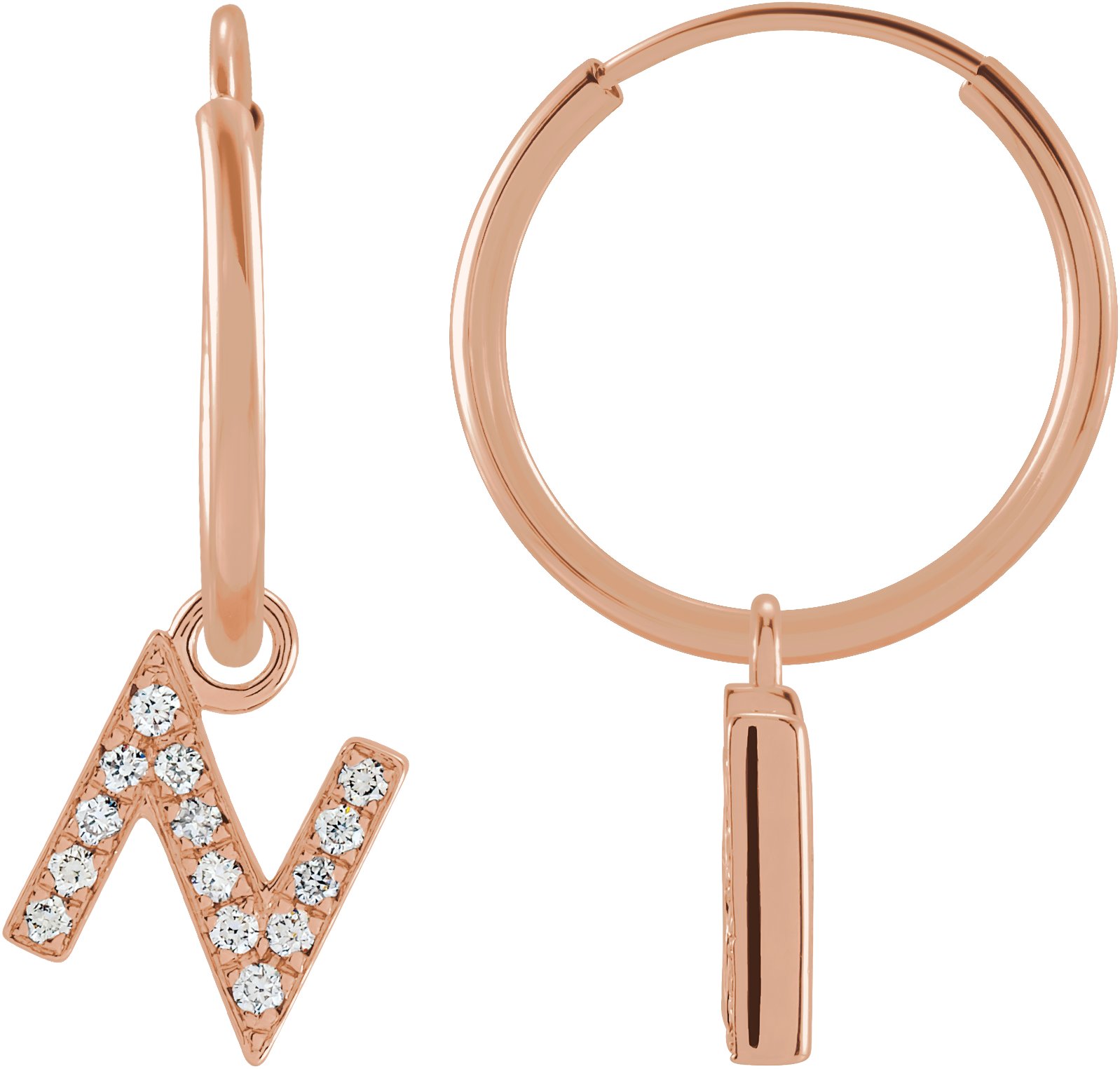 14K Rose .05 CTW Natural Diamond Single Initial N Hoop Earring Ref 18988712