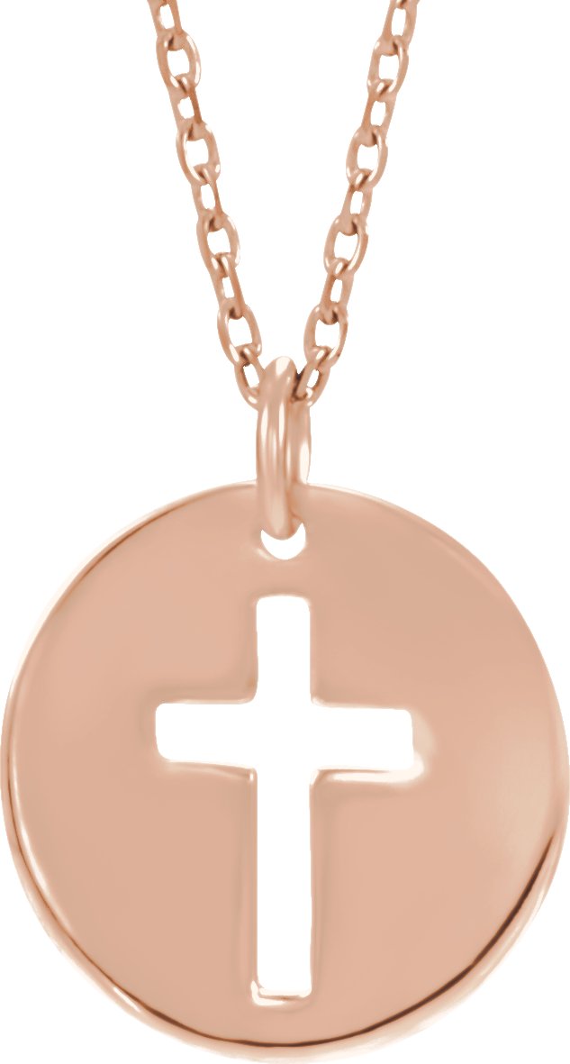 14K Rose .07 CTW Diamond Pierced Cross Disc 18" Necklace Ref. 14096053