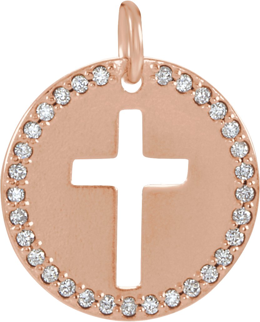 14K Rose .08 CTW Diamond Pierced Cross Disc Pendant Ref. 14096049