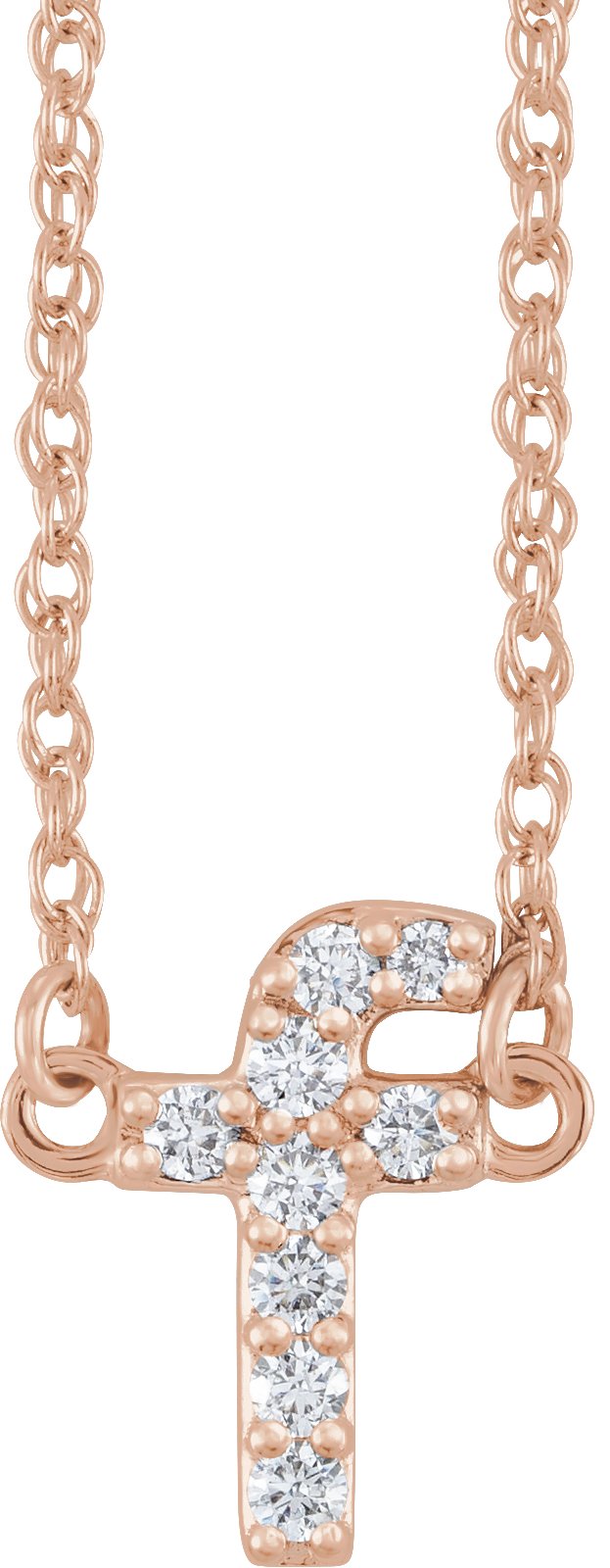 14K Rose .08 CTW Natural Diamond Lowercase Initial F 16" Necklace