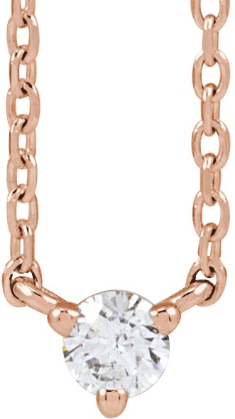 14K Rose 1/10 CT Natural Diamond 3-Prong 18" Necklace