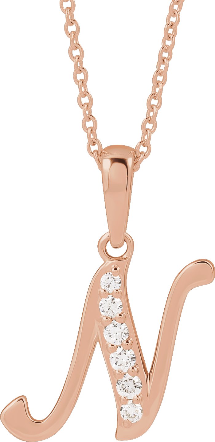 14K Rose 1/10 CTW Natural Diamond Initial N 18" Necklace