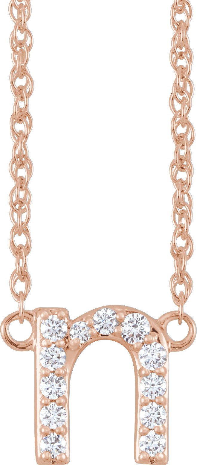 14K Rose 1/10 CTW Natural Diamond Lowercase Initial N 16" Necklace