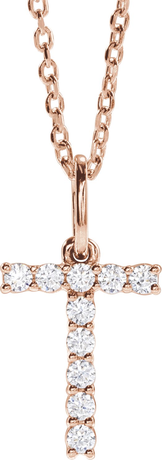 14K Rose 1/6 CTW Lab-Grown Diamond Initial T 16-18" Necklace