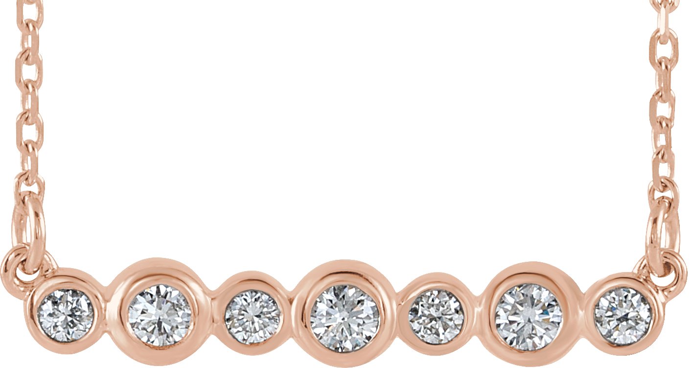 14K Rose 1/5 CTW Diamond Bezel Set Bar 16 18" Necklace Ref. 13352215