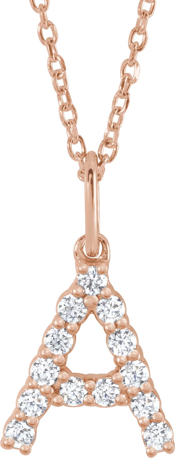 14K Rose 1/5 CTW Lab-Grown Diamond Initial A 16-18" Necklace