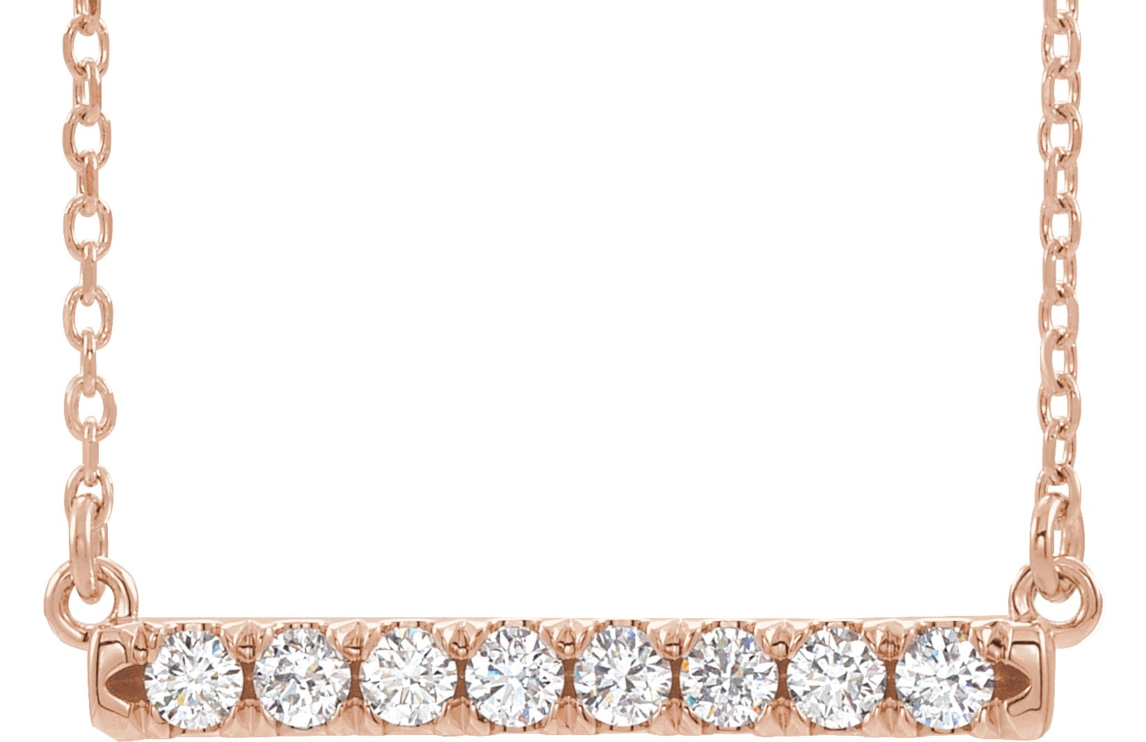 14K Rose 1/4 CTW Lab-Grown Diamond French-Set Bar 16-18" Necklace