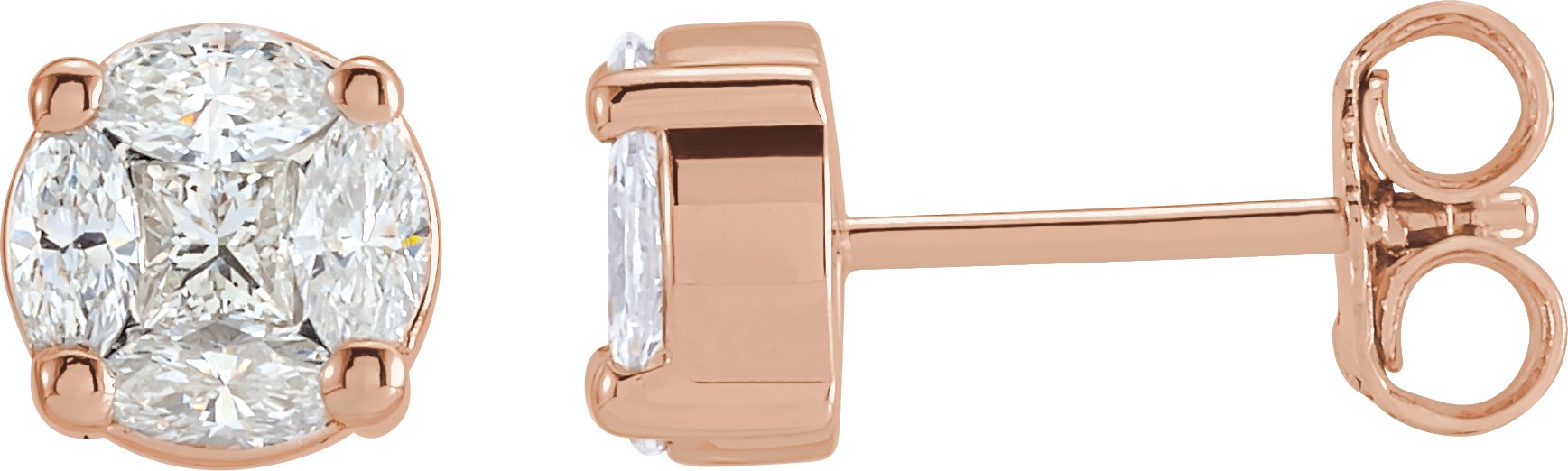 14K Rose .75 CTW Diamond Cluster Earrings