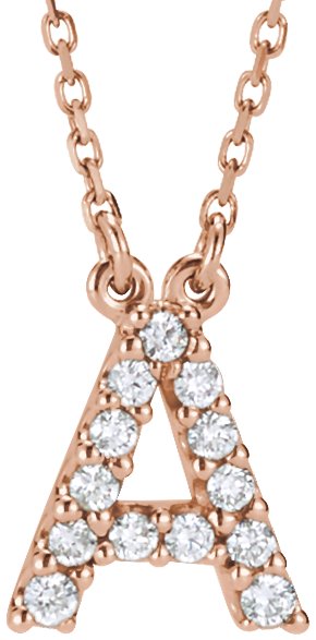 14K Rose 0.13 CTW Natural Diamond Initial A 16 inch Necklace Ref 9869890