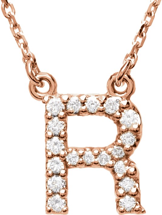 14K Rose 0.13 CTW Natural Diamond Initial R 16 inch Necklace Ref 9869937