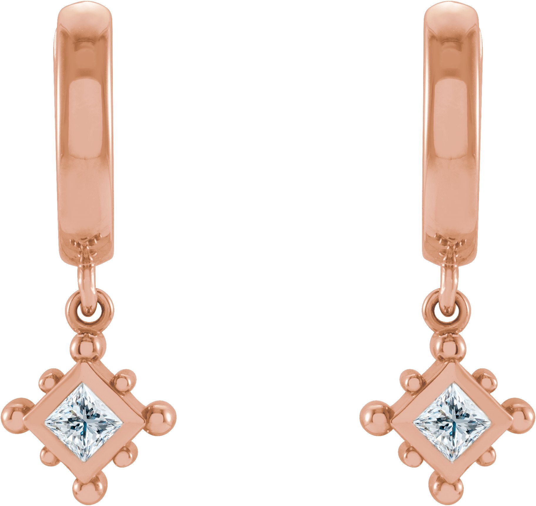 14K Rose 0.20 CT Natural Diamond Beaded Bezel Set Hoop Earrings Ref 18069076