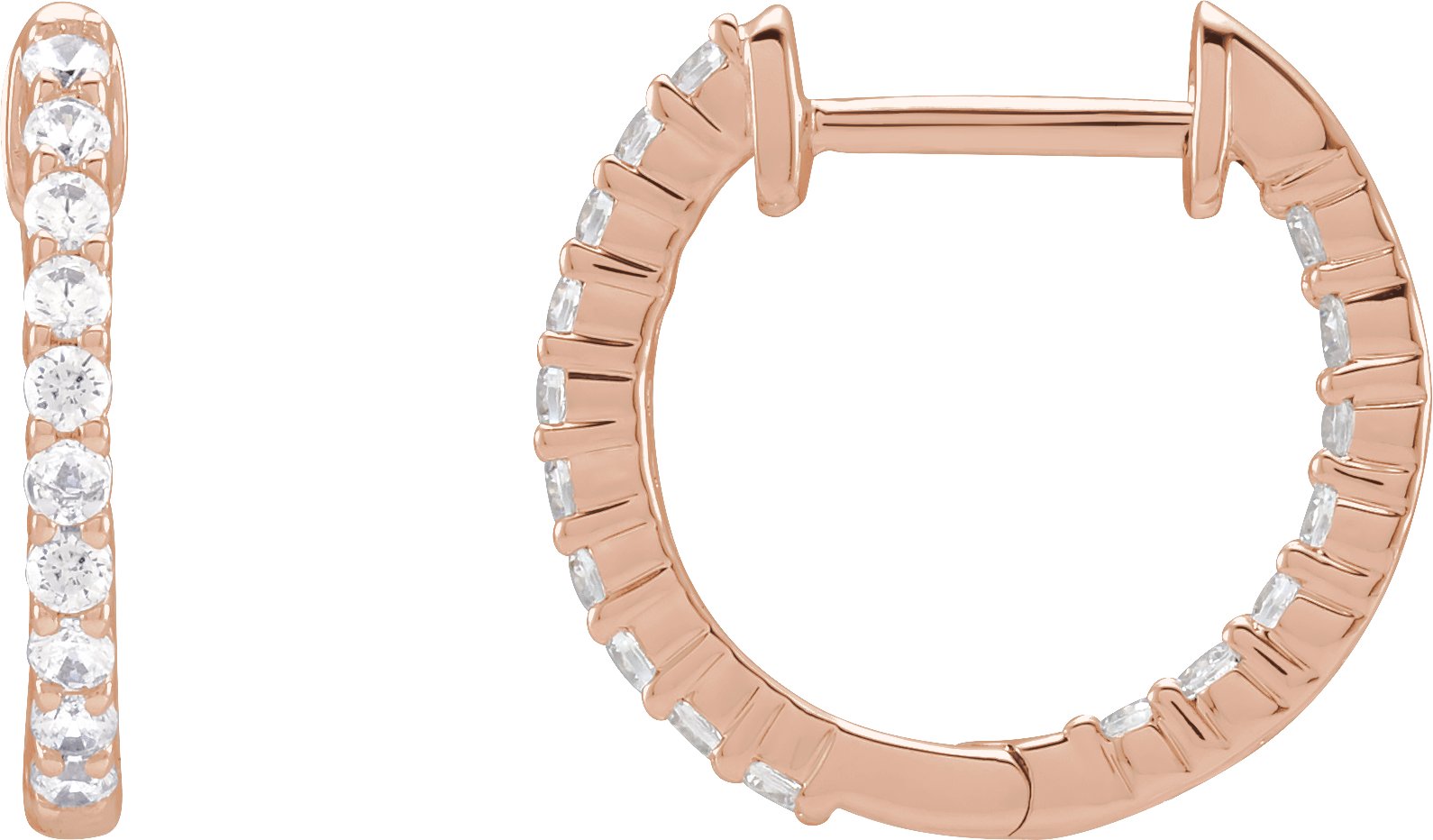 14K Rose 0.50 CTW Lab Grown Diamond Inside Outside Hinged 14.5 mm Hoop Earrings Ref 18734686